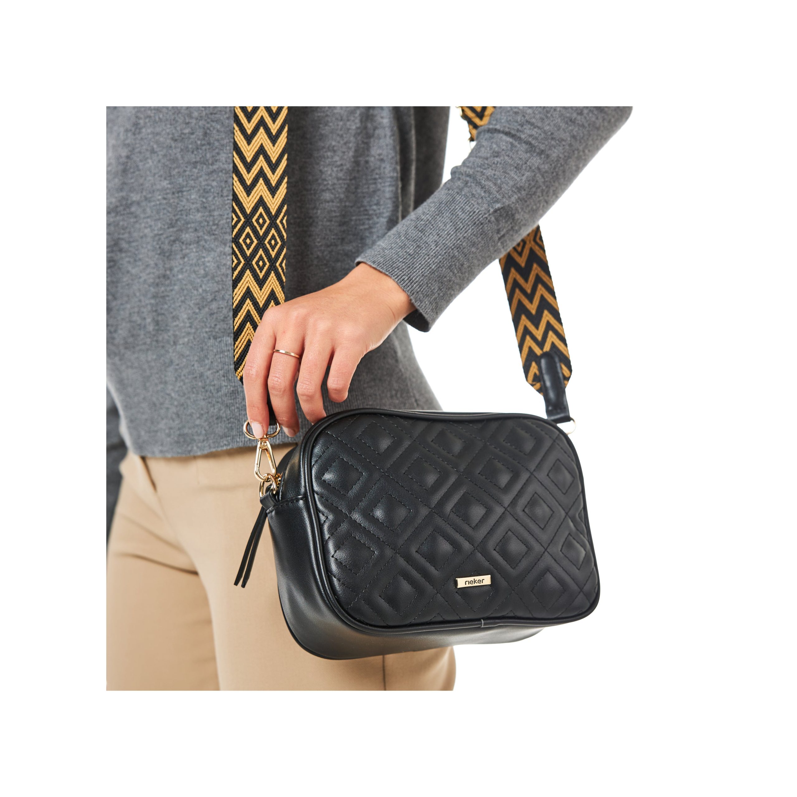 Bags not only offer storage space, they are also a great accessory! This is proven by this fashionable Rieker shoulder bag in a simple black design, which is broken up by the quilted look in a diamond pattern. The detachable shoulder strap in a fashionable pattern adds the finishing touch. In terms of functionality, th