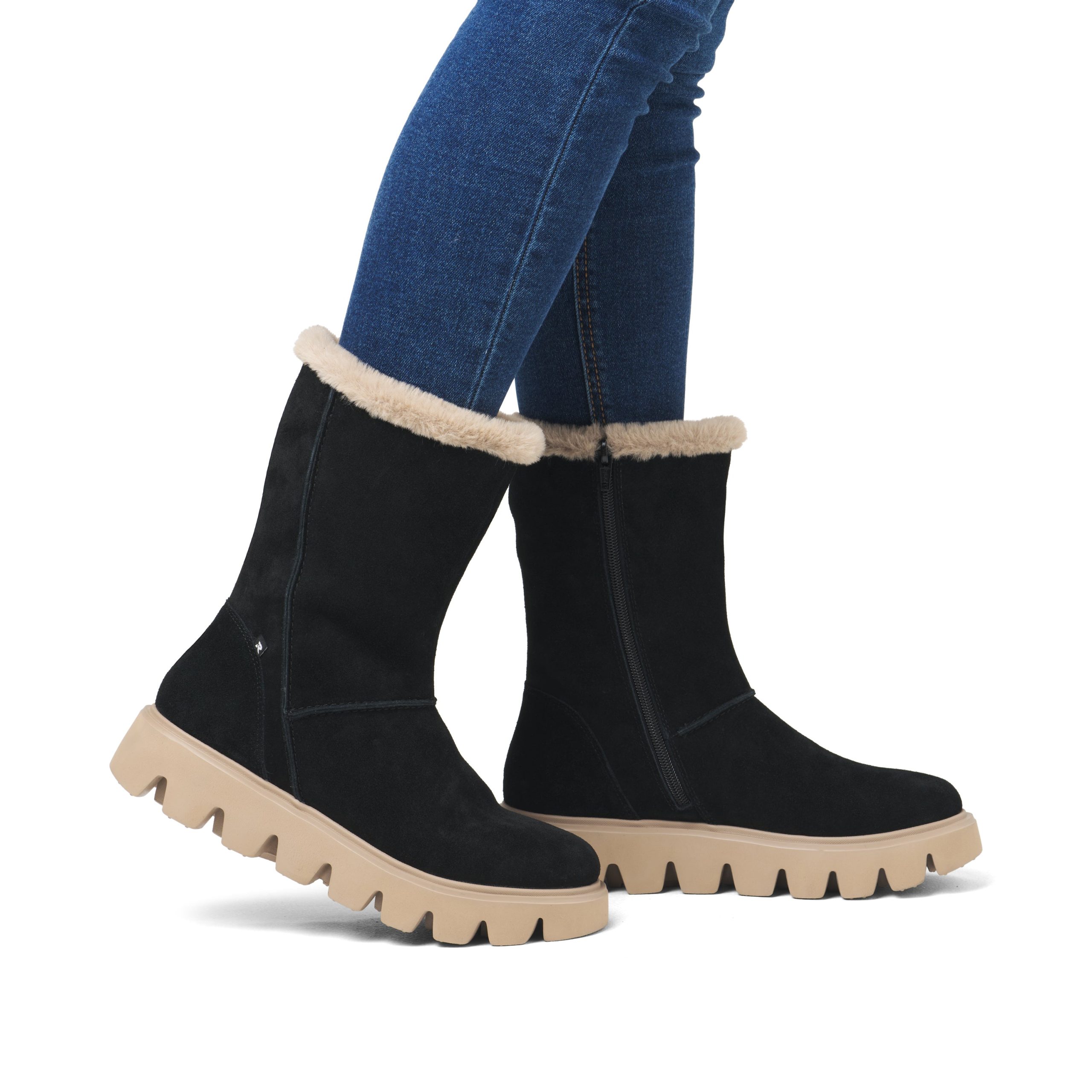A dream trio: style, comfort and function! These black Rieker ankle boots made of suede leather make the cold season fun. The zipper makes it easy to put on and take off the shoe. The flexible and ultra light sole additionally pampers the feet at every step. A feel-good factor on top is the comfort width G, which offer