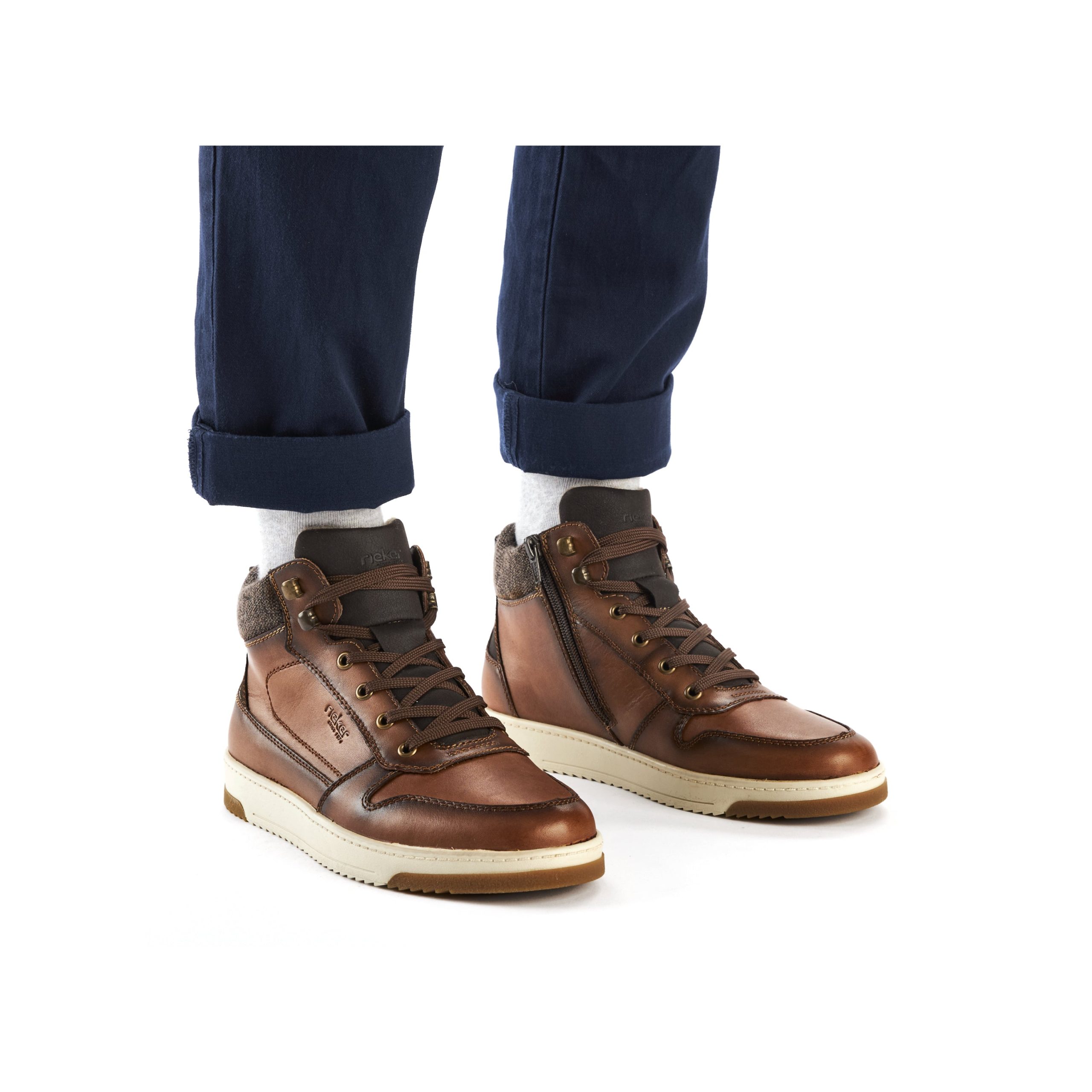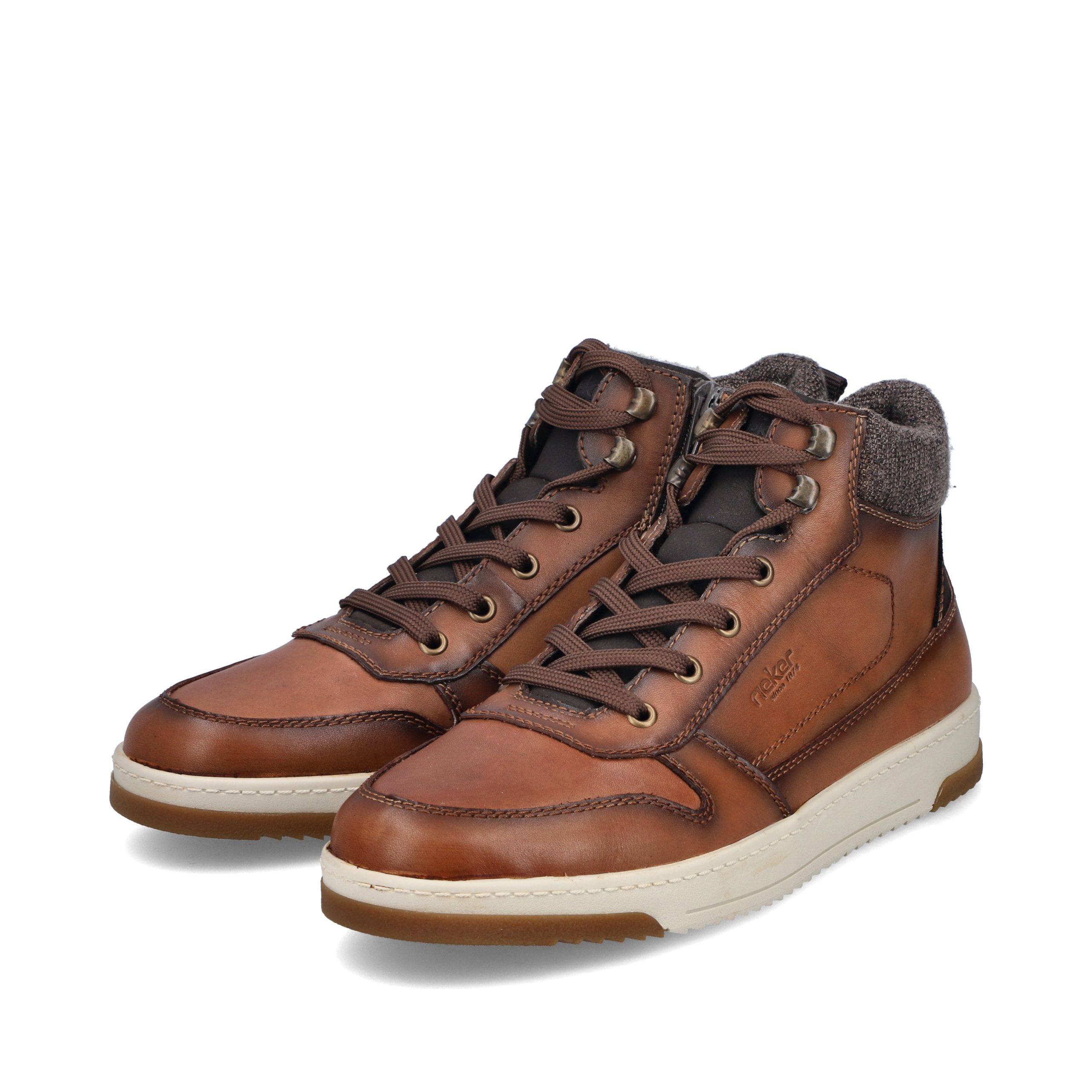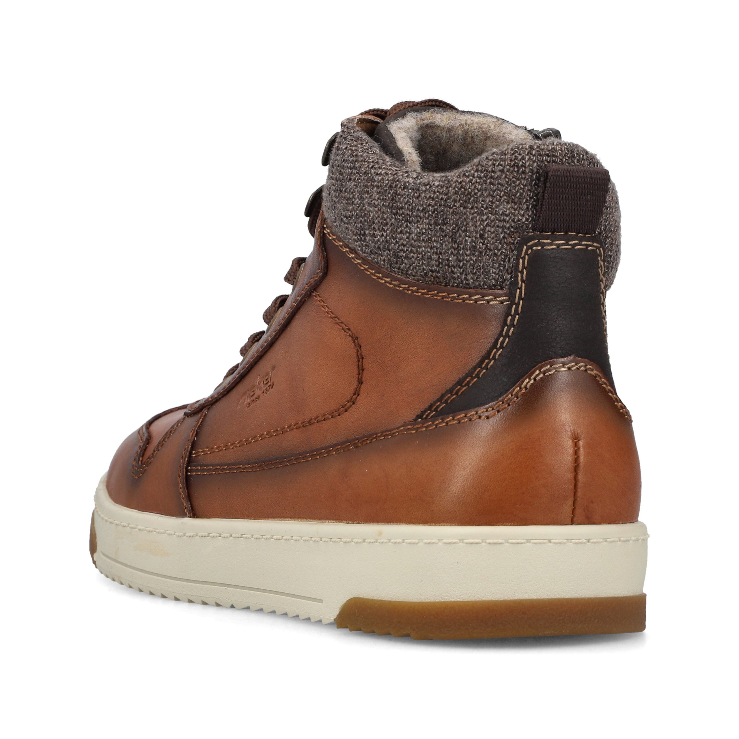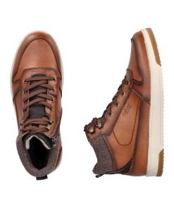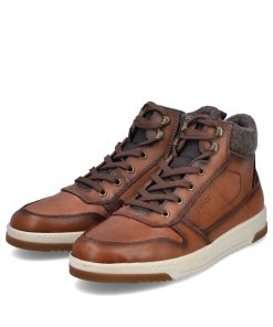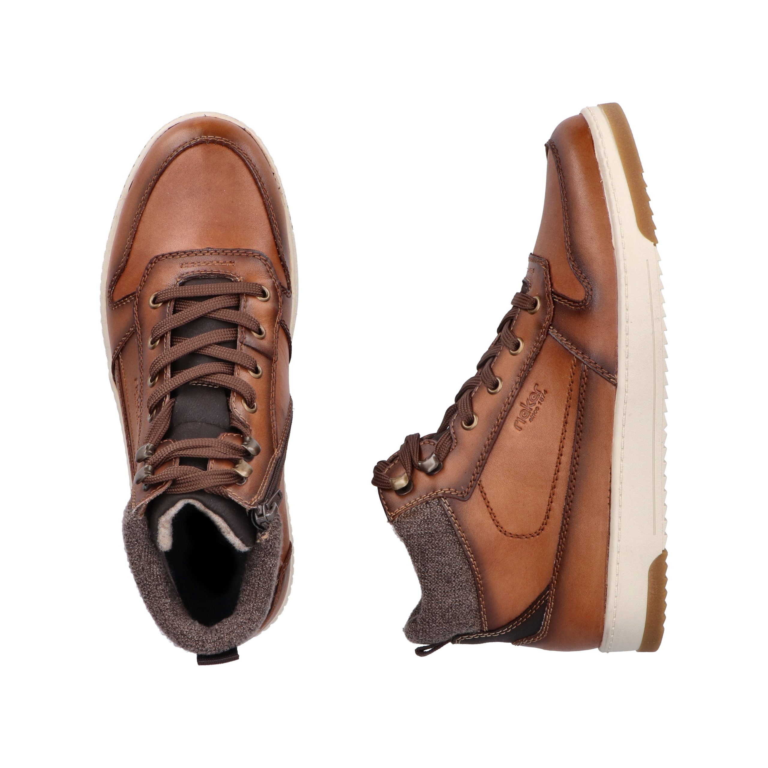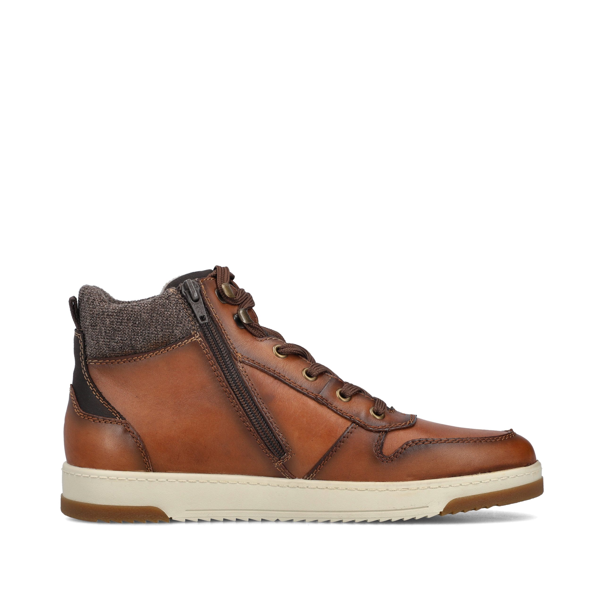 Trend shoe, perennial favourite, everybody's darling. These casual fox brown Rieker high-top sneakers made of smooth leather are cozy companions on all your paths. In addition to the lacing, this model is equipped with a zipper that provides optimal support. The sole is grippy and ensures a good traction at all times.