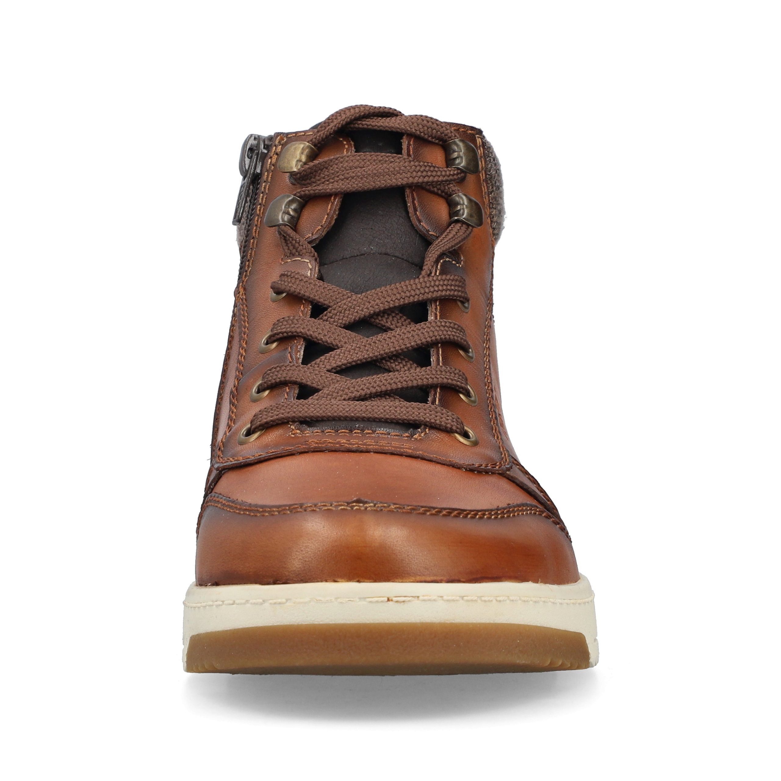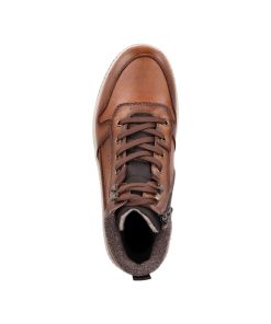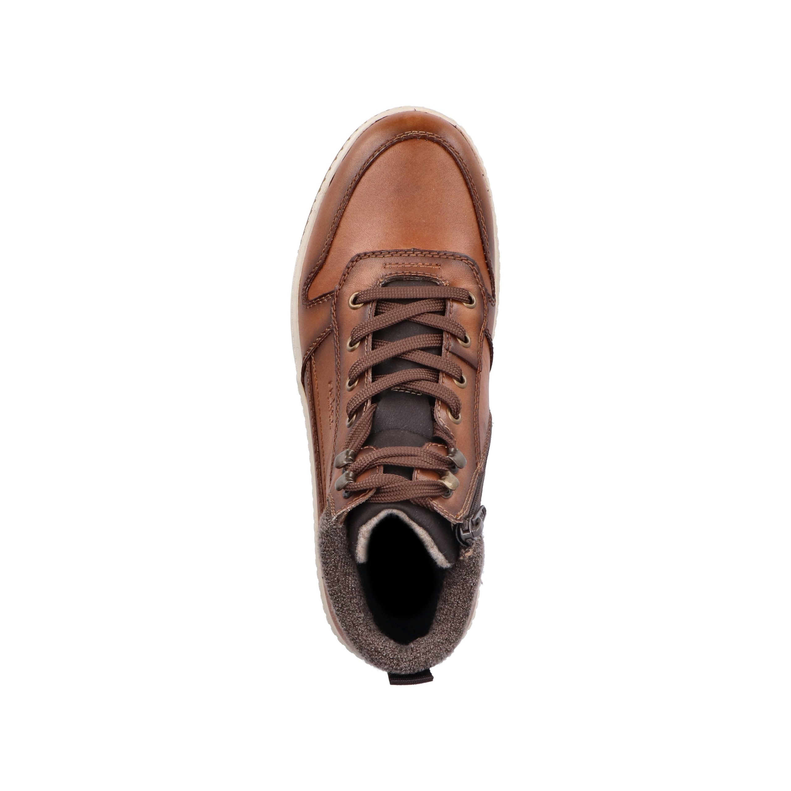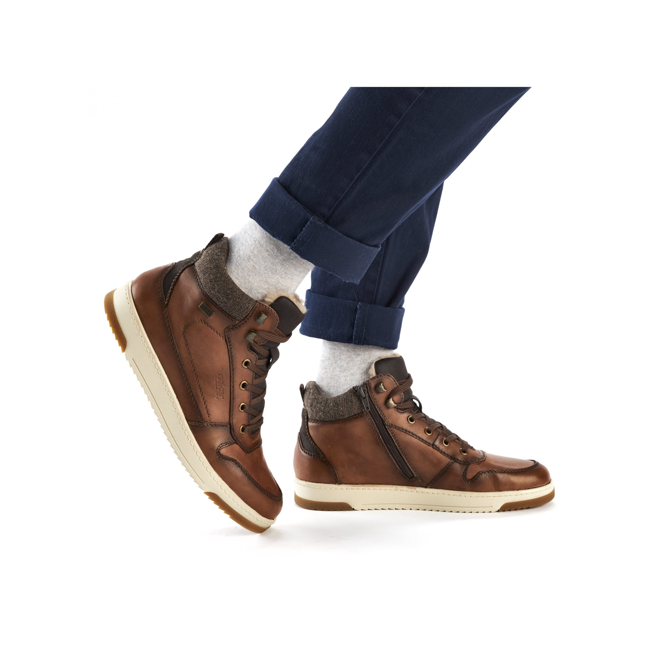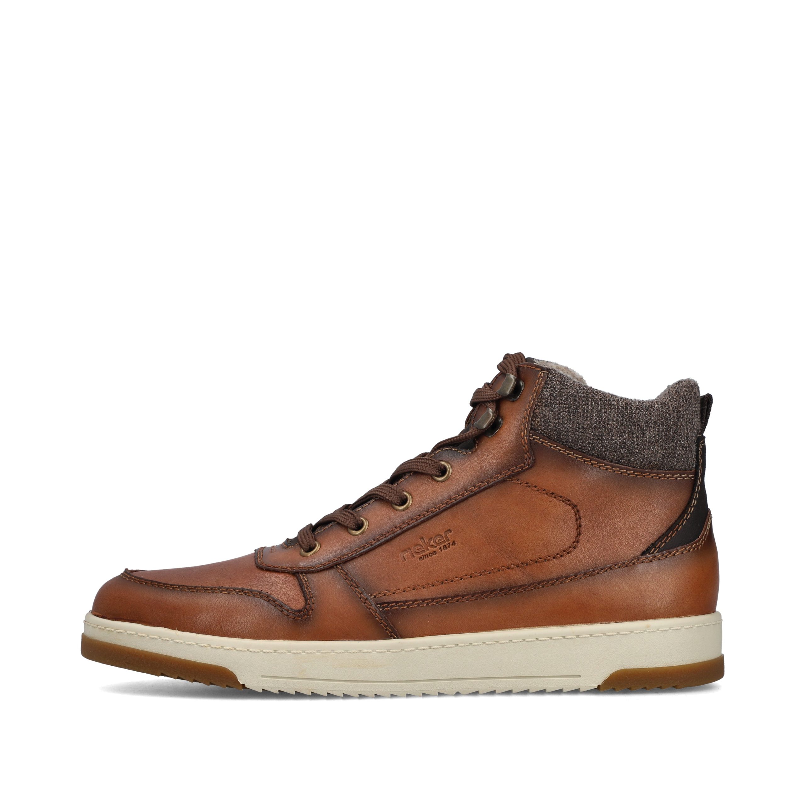 Trend shoe, perennial favourite, everybody's darling. These casual fox brown Rieker high-top sneakers made of smooth leather are cozy companions on all your paths. In addition to the lacing, this model is equipped with a zipper that provides optimal support. The sole is grippy and ensures a good traction at all times.