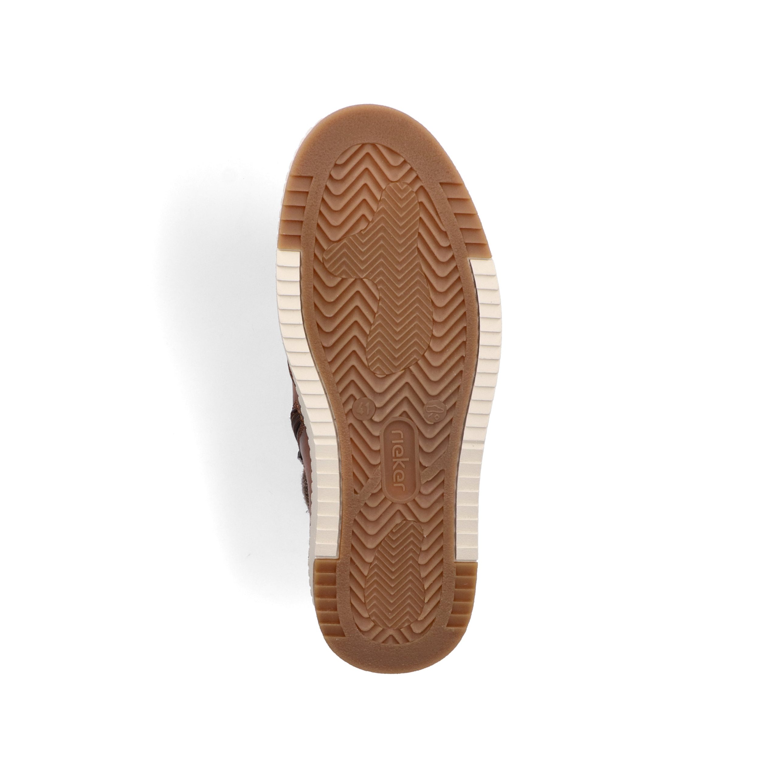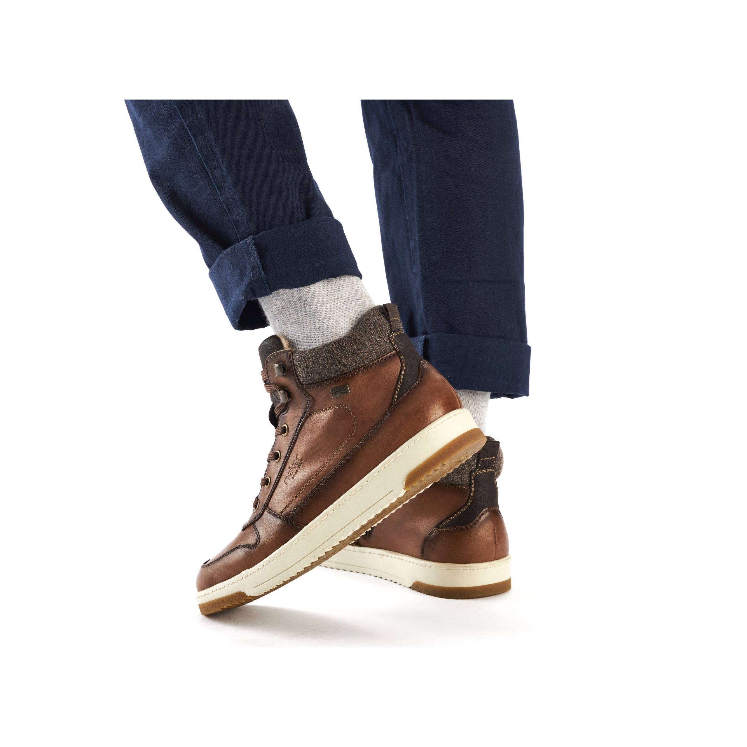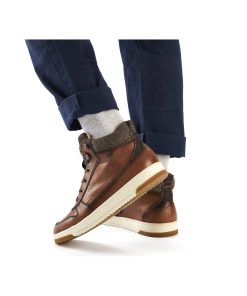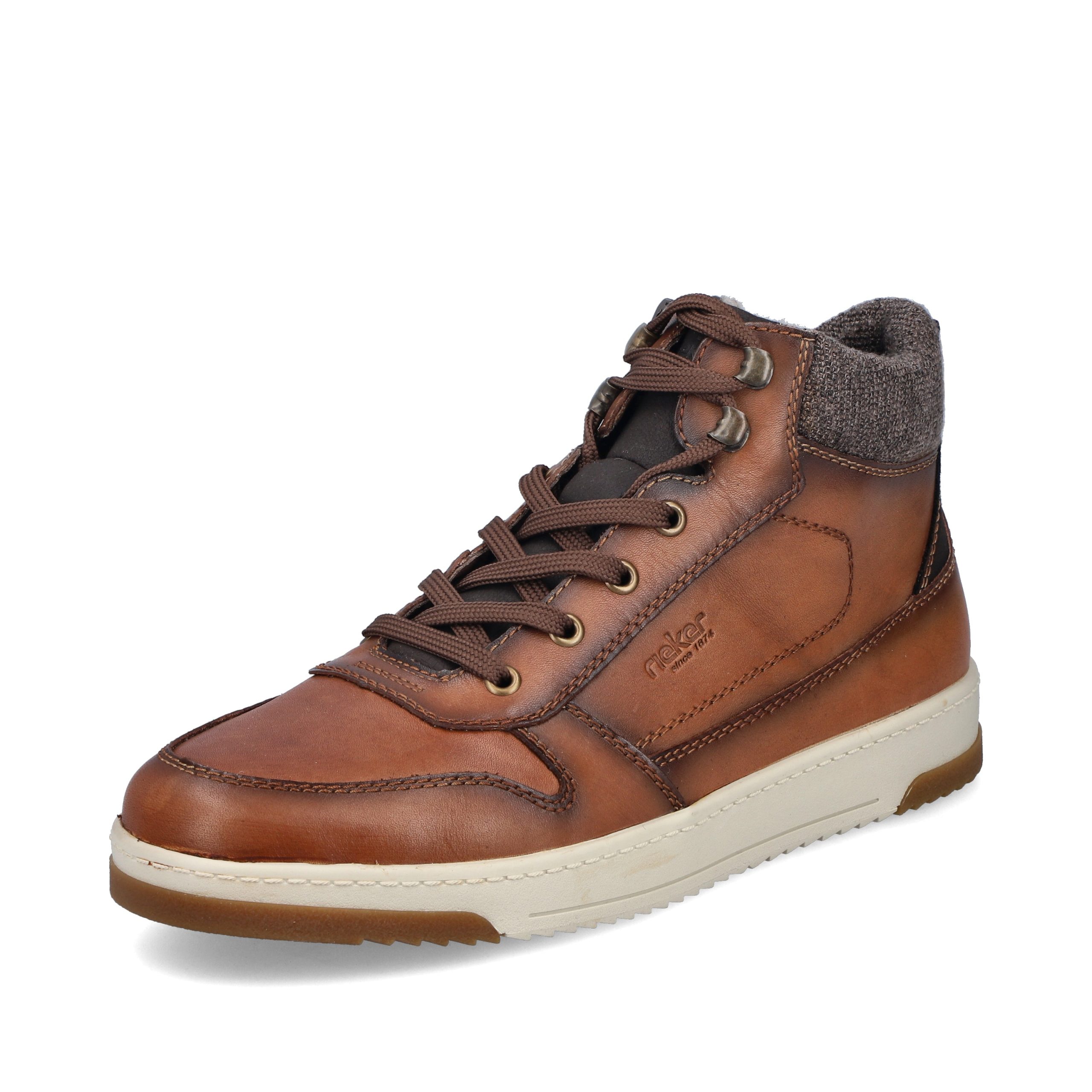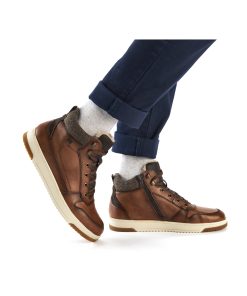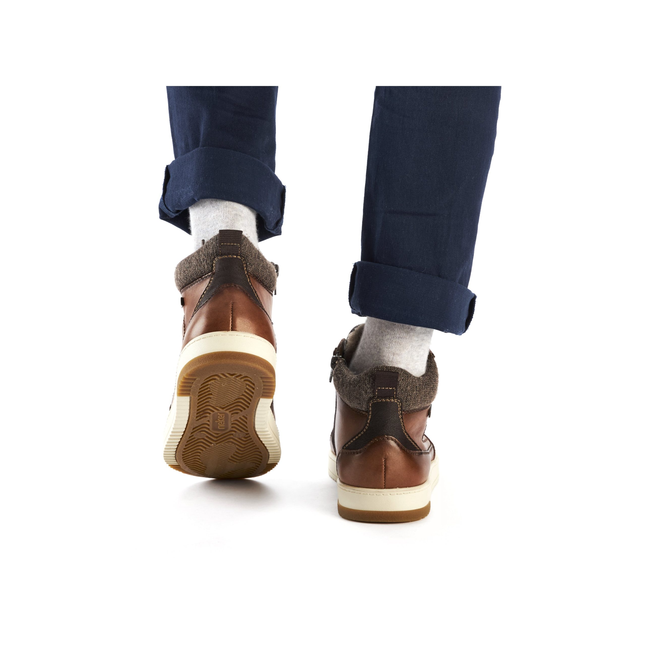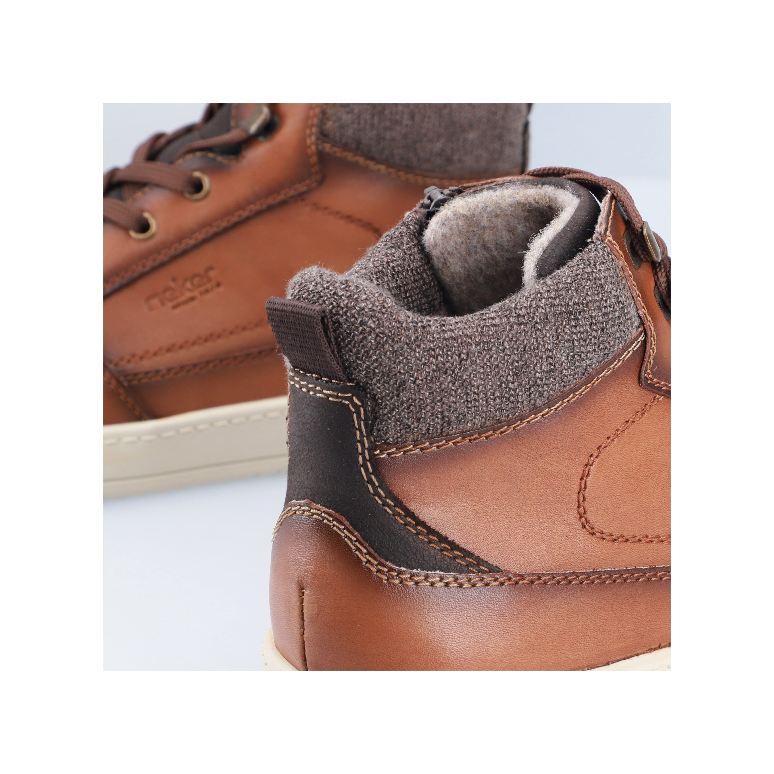Trend shoe, perennial favourite, everybody's darling. These casual fox brown Rieker high-top sneakers made of smooth leather are cozy companions on all your paths. In addition to the lacing, this model is equipped with a zipper that provides optimal support. The sole is grippy and ensures a good traction at all times.