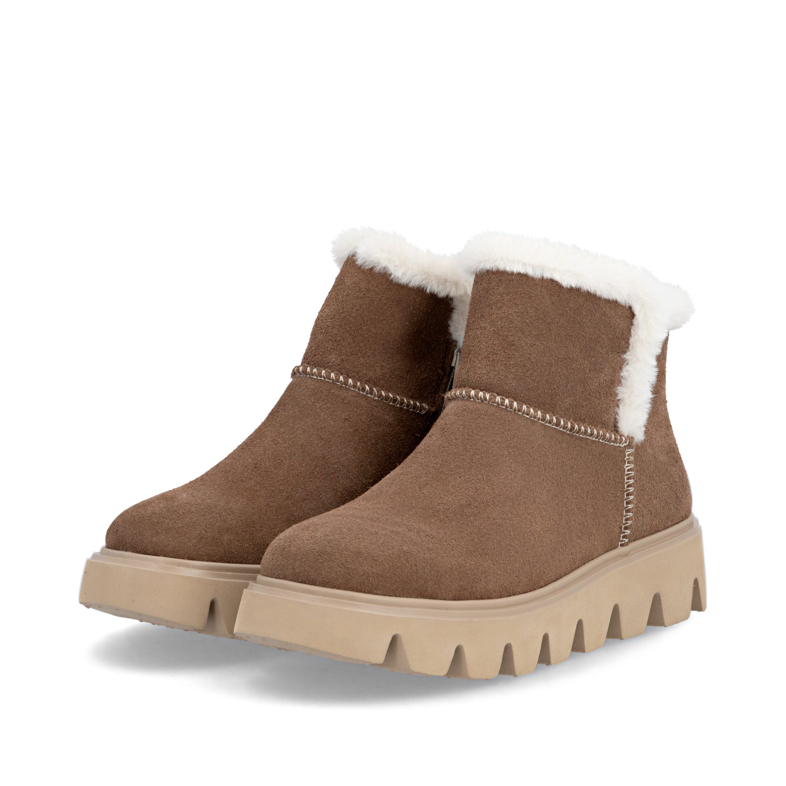 More freedom of movement for the feet! These brown Rieker ankle boots made of suede leather are your best buddies for cold days. The zipper allows for the shoe to be put on very quickly. With the flexible and ultra light sole, your feet will enjoy best comfort at every step. The model is cut in comfort width G that ens