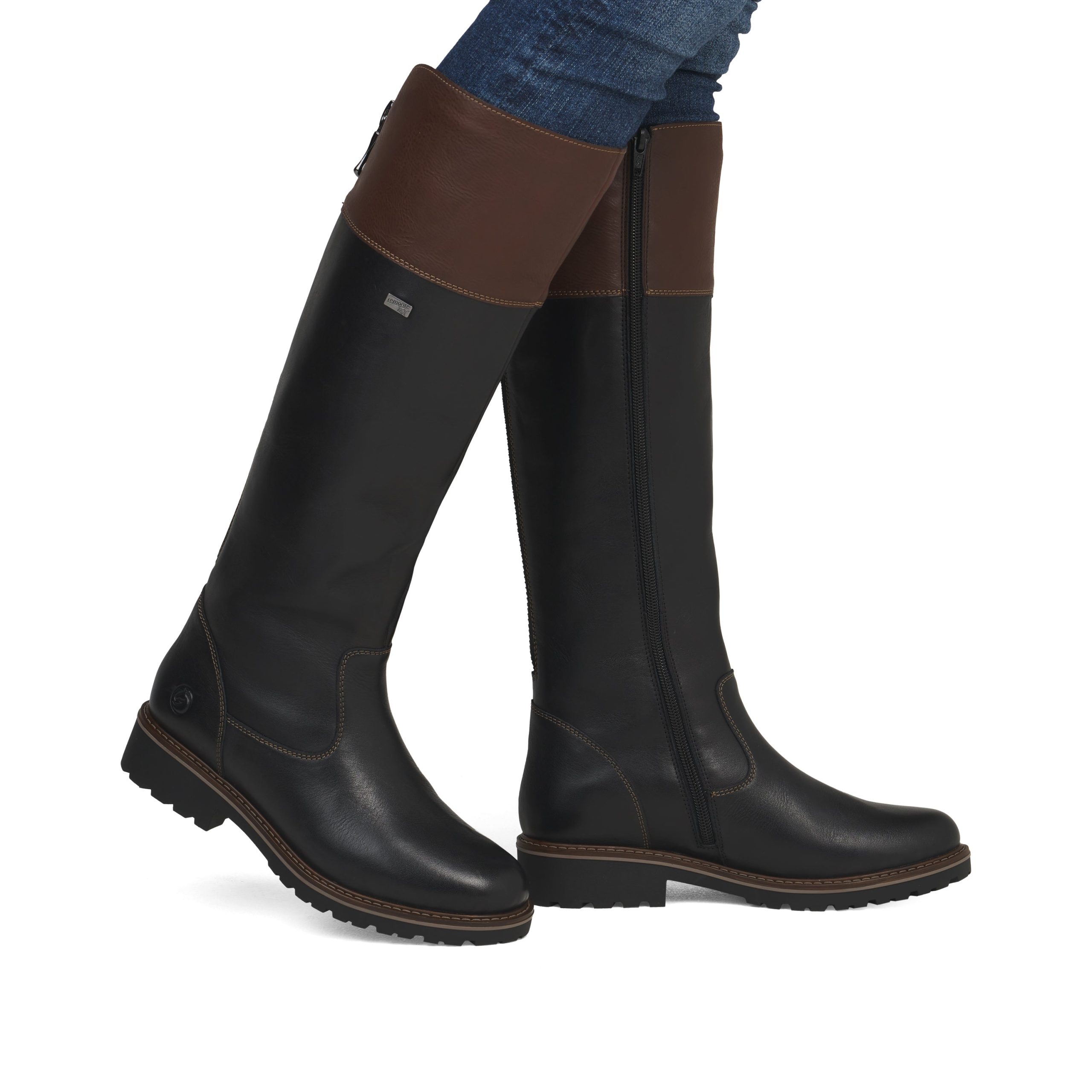 Style AND comfort – there is no or! These comfortable black brown remonte high boots made of smooth leather impress with a cool look and functional power. A zipper allows for quick and easy donning. The colour-contrasting shaft collar provides the perfect finish and a striking look. The cushioning and grippy sole toget