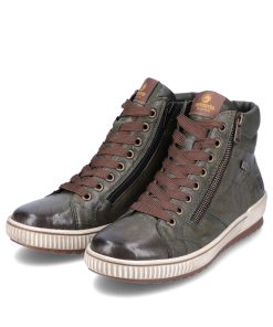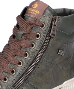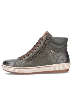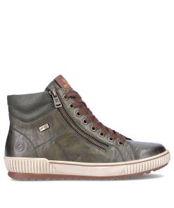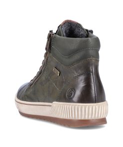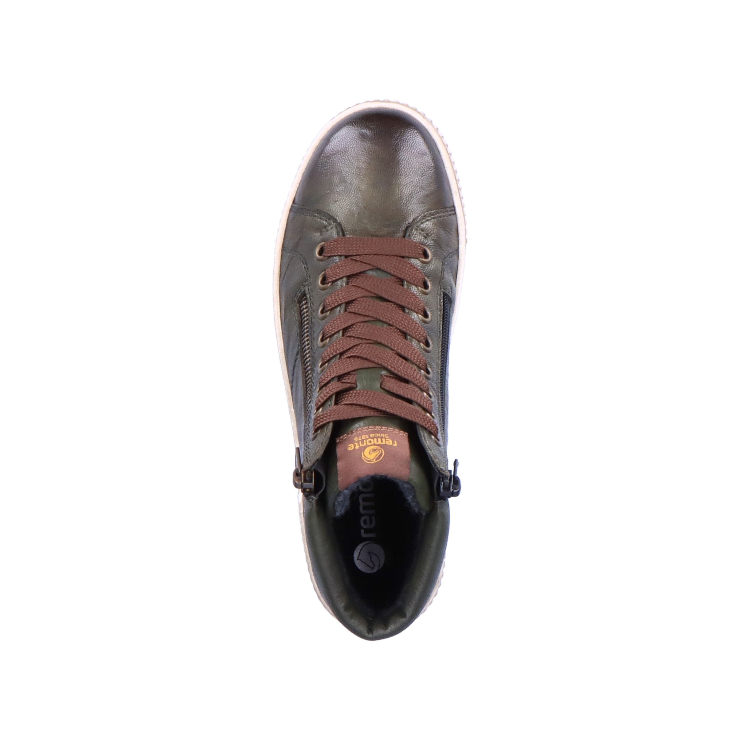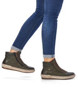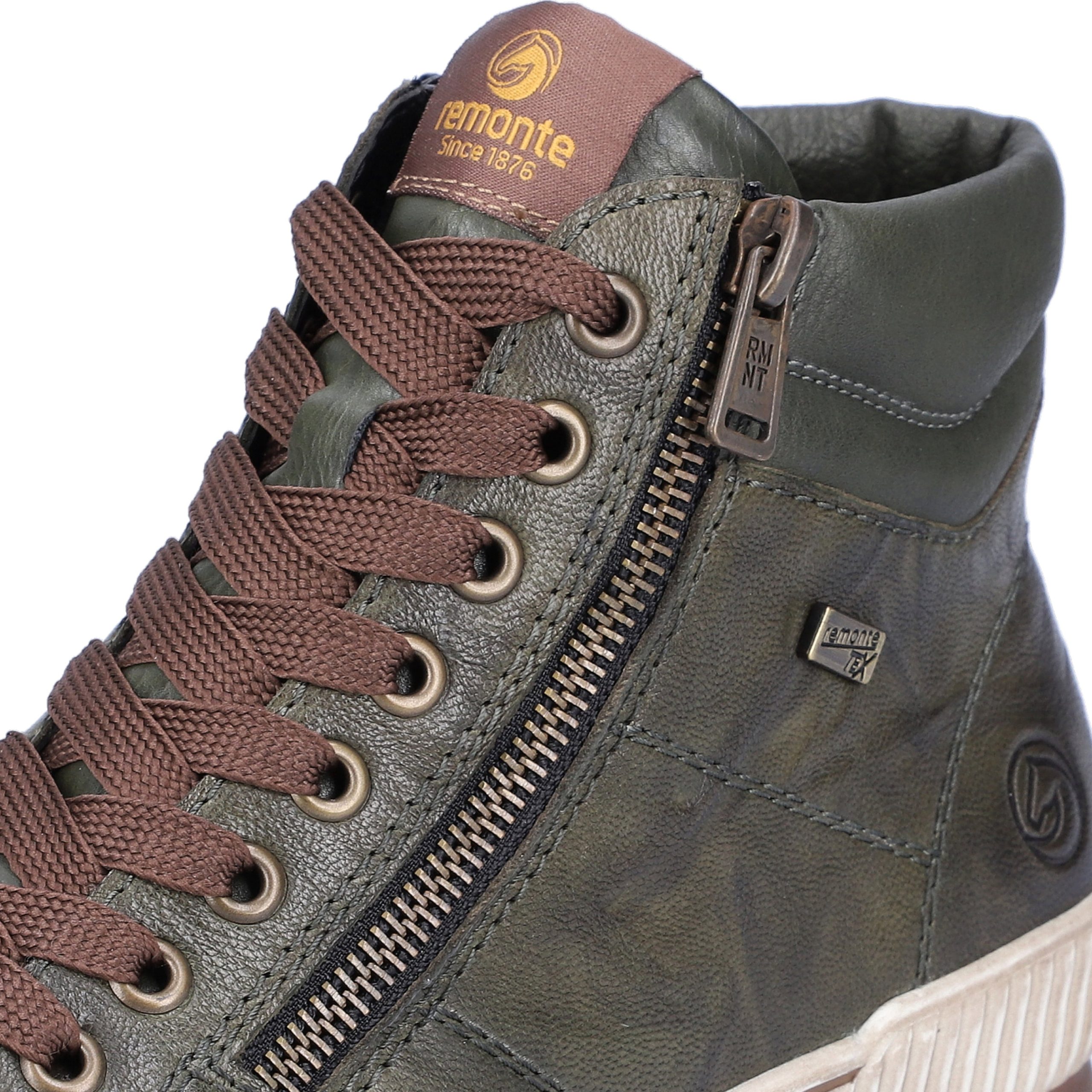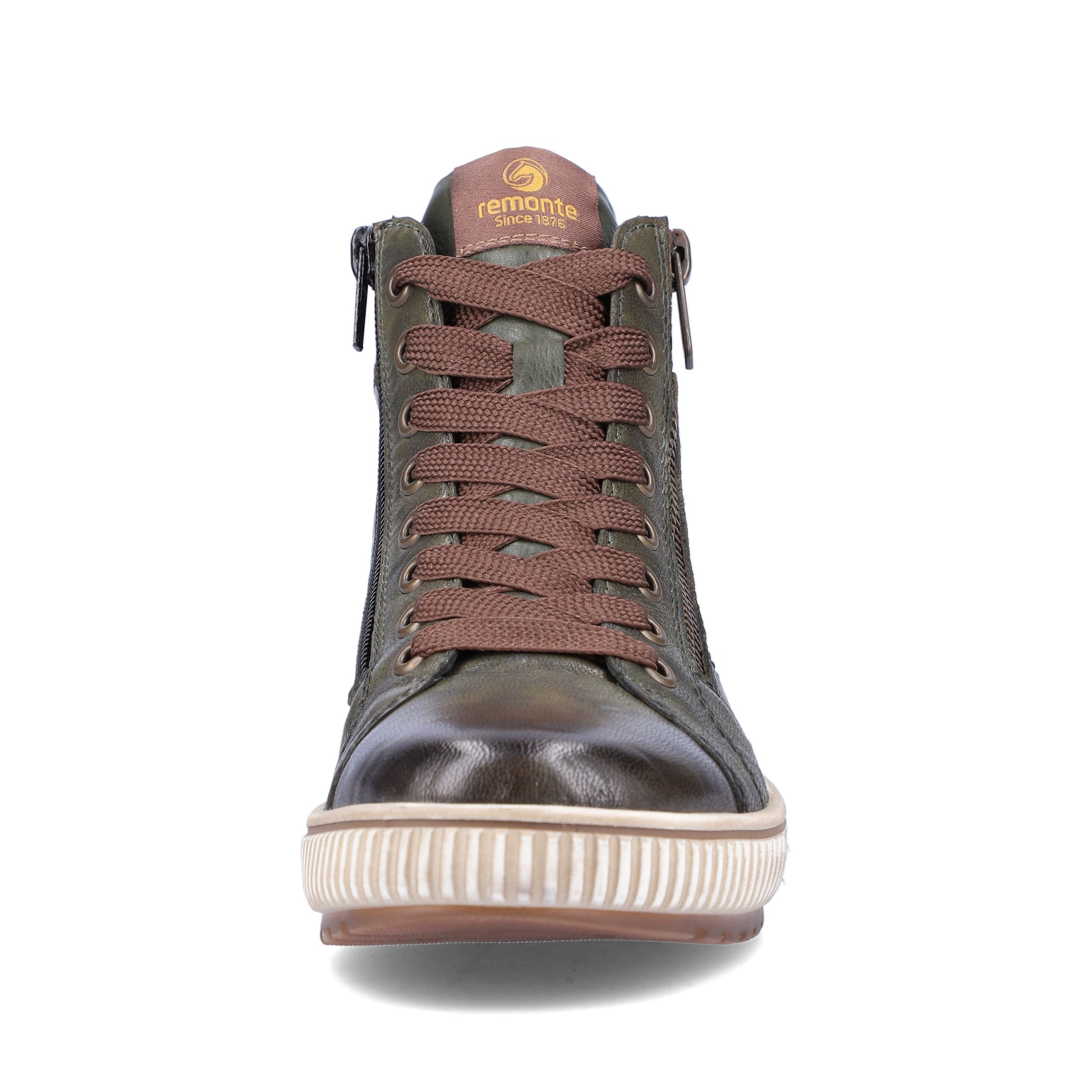 Maximum style, maximum comfort! The green brown remonte lace-up boots made of smooth leather are an absolute must-have in every shoe cupboard. The clever combination of lacing and zipper makes the shoe easy to put on and take off. The flexible and cushioning sole together with the padded and removable insole creates a