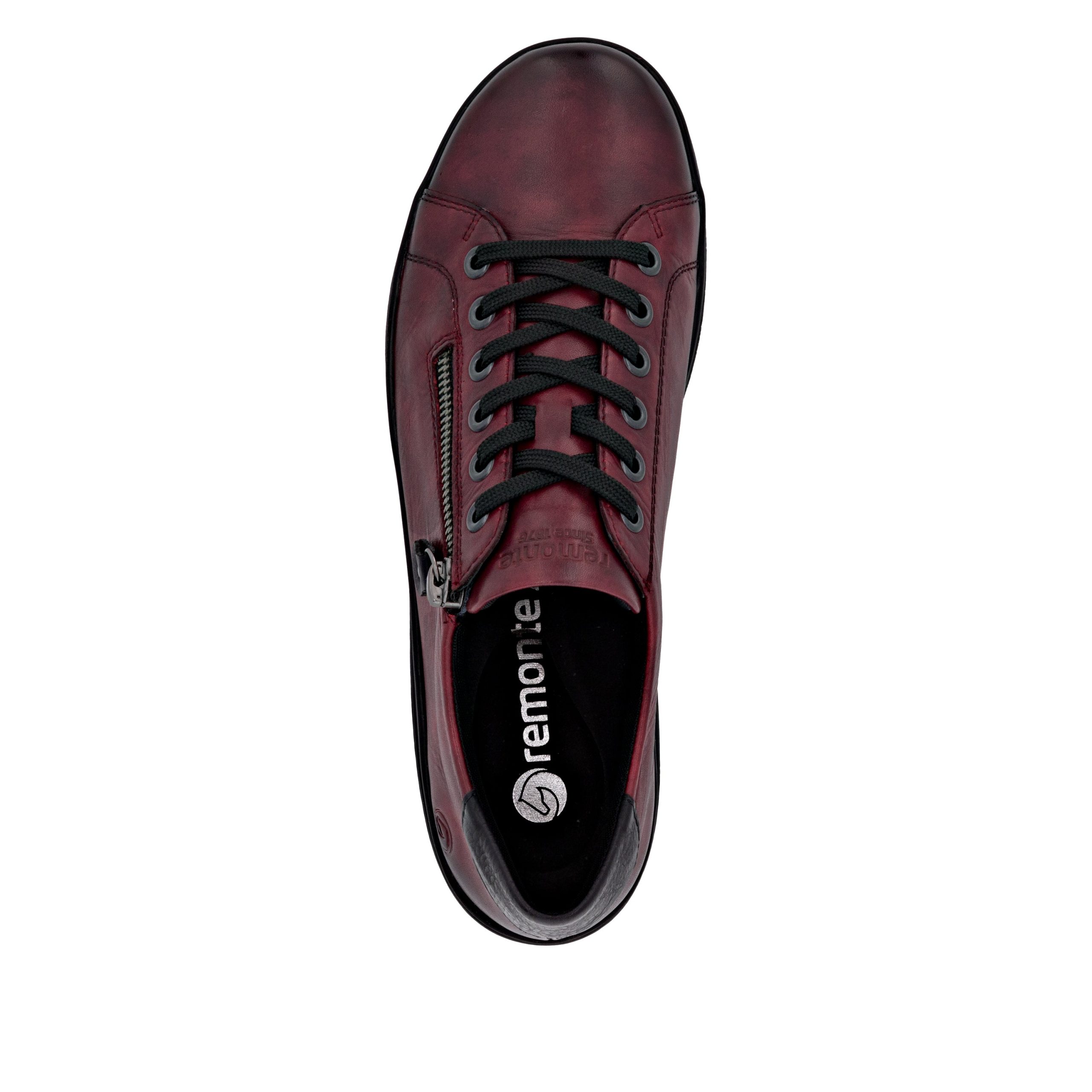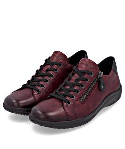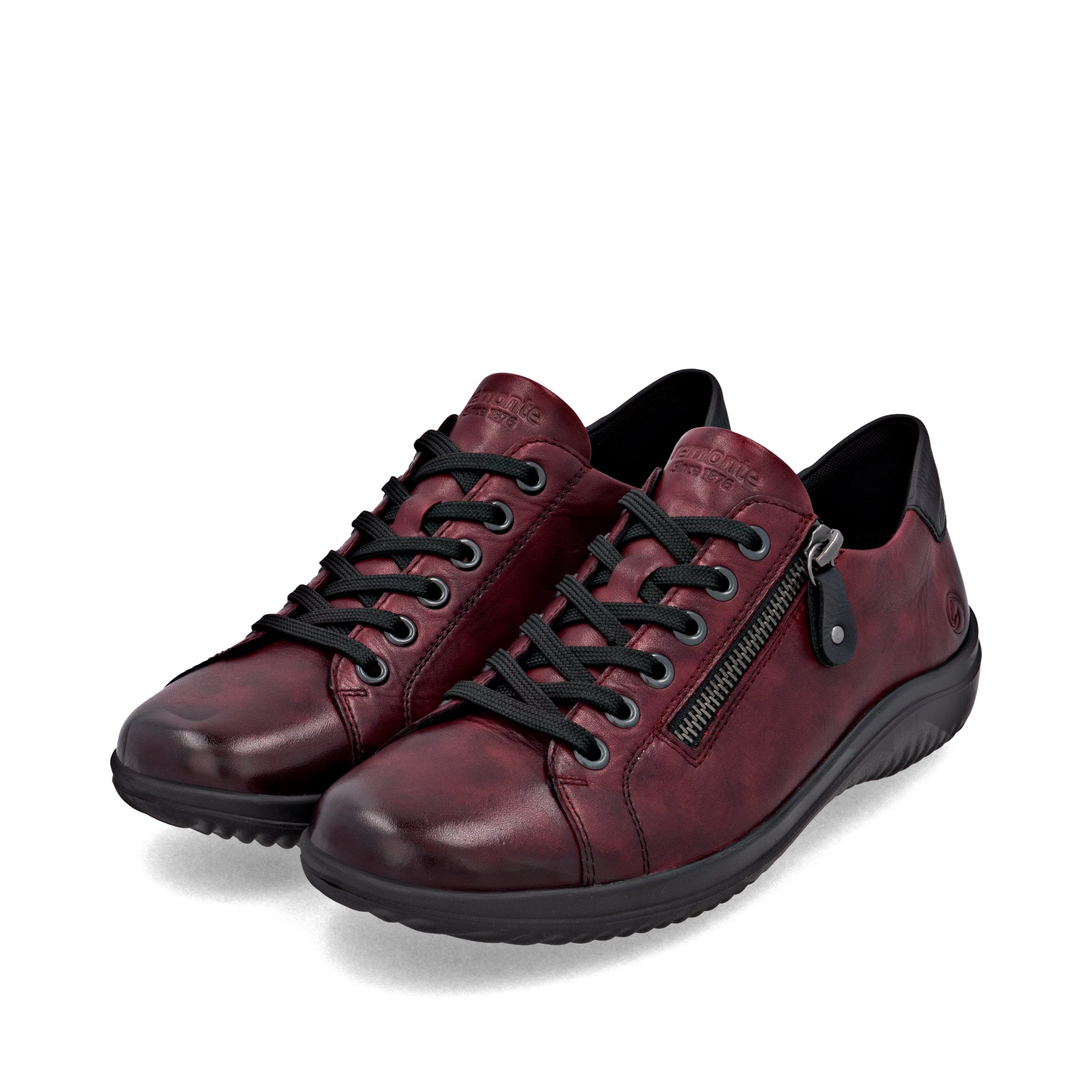 Comfy queen! These red black remonte lace-up shoes made of smooth leather are sure to catch a glance or two. The clever combination of lacing and zipper guarantees a perfect fit and optimal support. Lite 'n Soft: a padded and removable insole meets an ultra-light outsole. Furthermore, the comfort width offers your feet